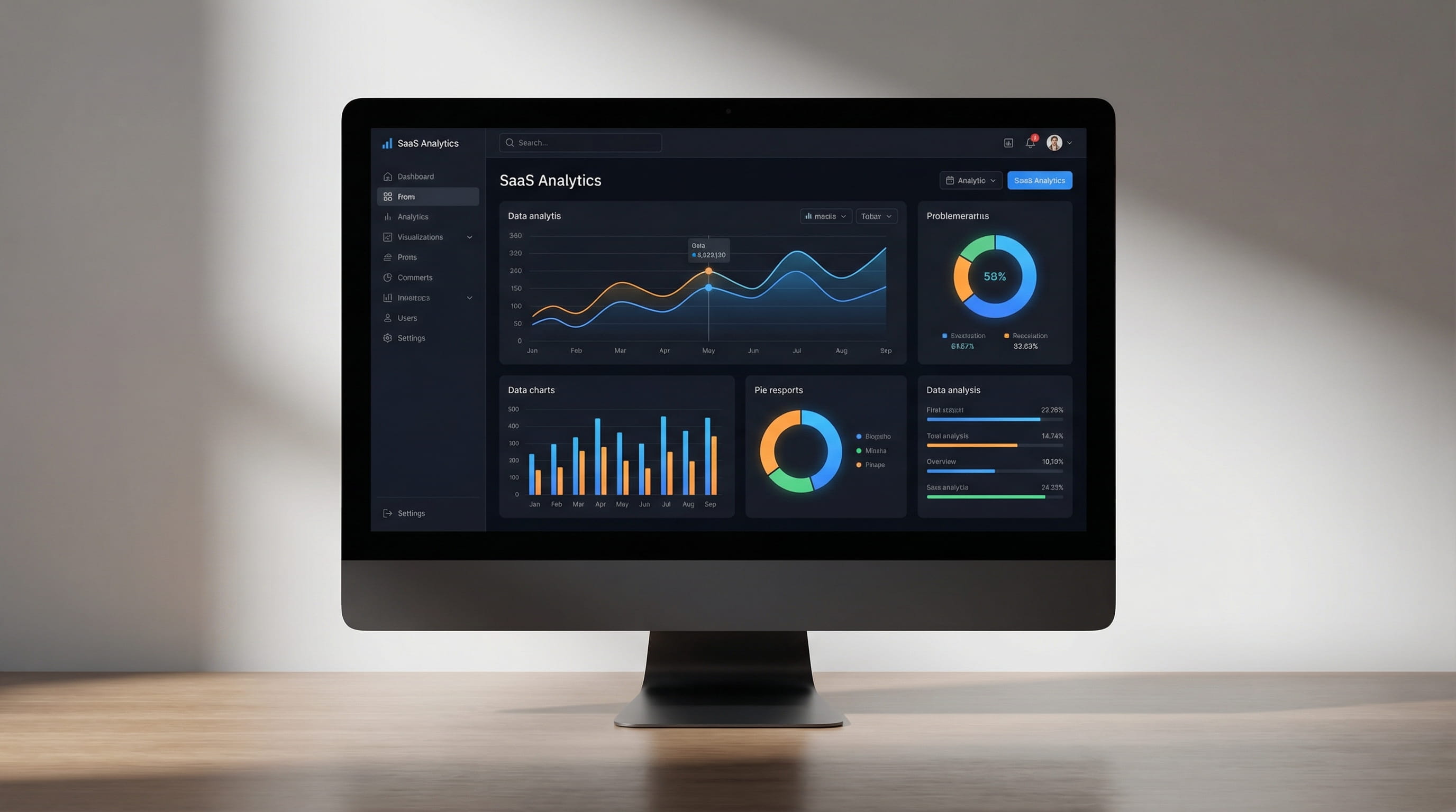 Real-time SaaS metrics dashboard with data visualization.